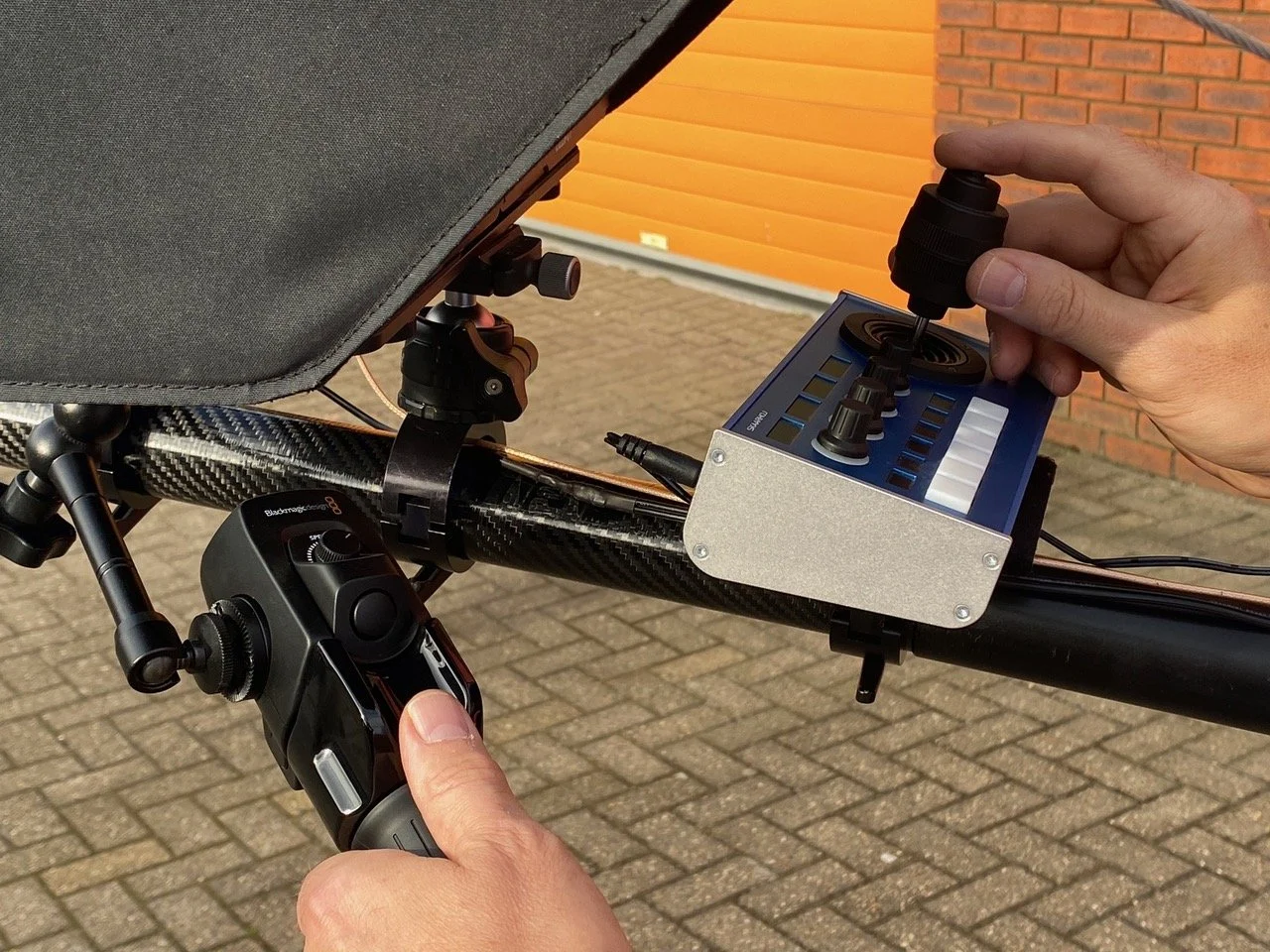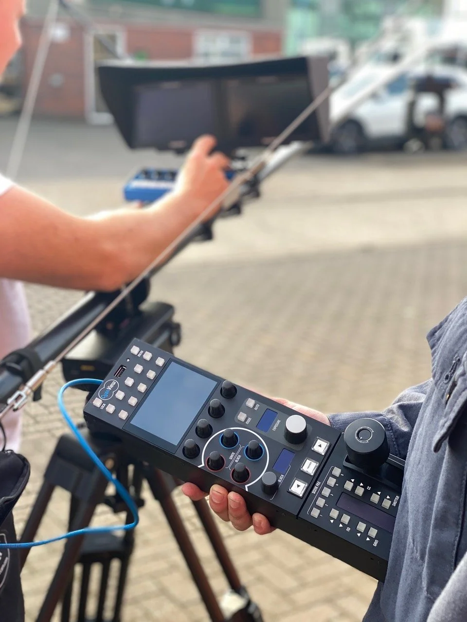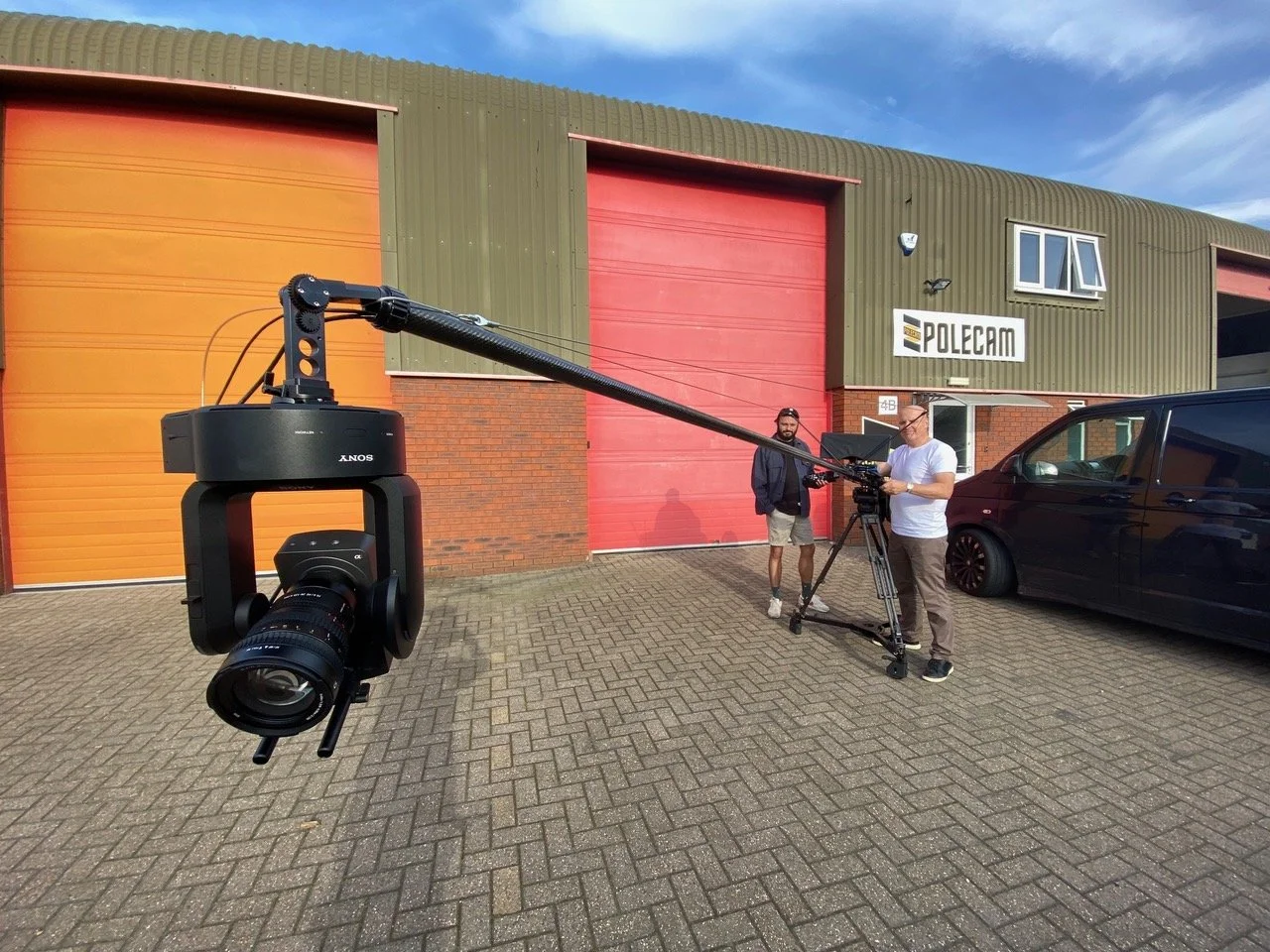 Ben Elms and Steve Gile have now rigged their Polecam with twin monitors, a Sony FR7 PTZ camera and control through a Skaarhoj PTZ Fly, an optional Blackmagic Zoom Handle (that can also focus) all painted with a new Cyanview RCP with joystick and RIO adapter. Full fibre available too.